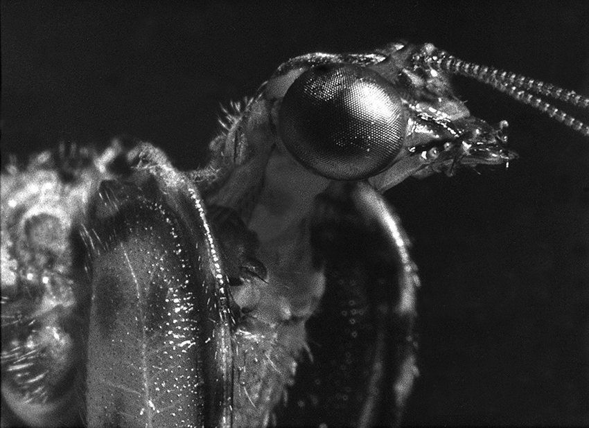 From Wikipedia: "Ron Sterling is honored for Mantis Fly, a very close black-and-white film macrophotograph of a live mantisfly found in the Santa Rita Mountains of Arizona in August 1963. The original 12x15 black-and-white print was scanned in 2010 to produce a digital version of this photograph. Sterling also contributed a collection of wildlife photographs taken over the course of decades." I call this one of my many miracle insect photographs taken during the years 1960 through 1966. It had to be a strange sight for others to watch me, a gangly 17 year old, leaning against a campground bathroom wall at night, inching along as slow as possible to not scare off the mantispid and holding a 35 mm SLR, with a 50 millimeter lens attached to a 40 millimeter extension tube with an old-style, early electronic flash system called a Strobonar Futuramic mounted sideways directly above the lens, stalking this mantispid while it stalked food, in the Santa Rita mountains of Arizona. Talk about hunting small game! When the Strobonar went off at a distance of about six inches from an insect like this mantispid, it is a bit of a shock for them to say the least, yet, this one just trucked on over about a foot away and continued to hunt. Not sure I have seen that kind of non-startle in an insect ever. I became what I would call a die-hard "naturalist" during my sixth grade year (1957). My first published article with its photospread in 1965 was called "Viewpoints on Nature." I switched to live insect collecting by way of photographs in 1960 after getting really bored of just catching, killing, and displaying dead insects. I lived just across the street from a very prolific swampland in Southern California, so I became an expert on macrophotography of live dragon and damselflies in the field. You can call me a geek, for sure. I developed my own film and printed my own photographs in my own darkroom built inside the garage.