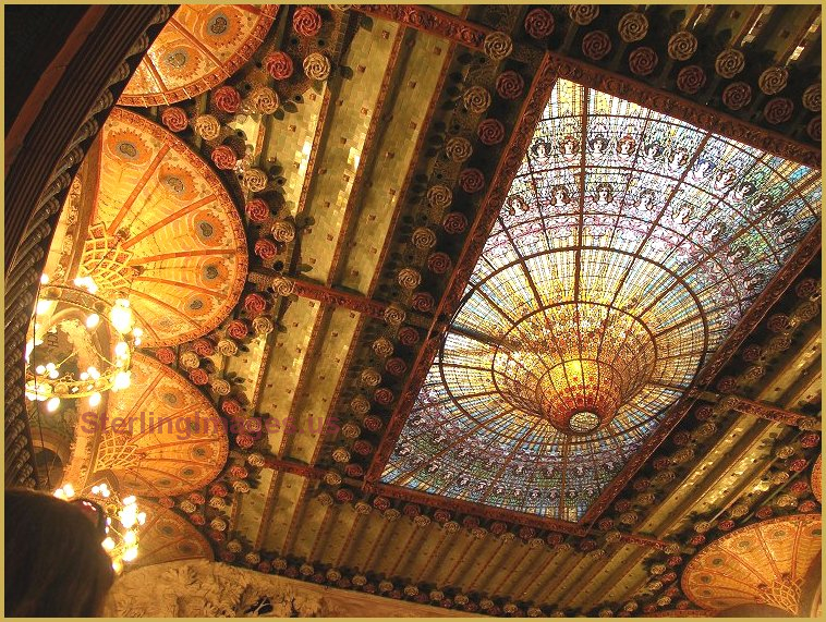 (Palace of Catalan Music or symphony hall) in Barcelona, Spain. The architecture is in the Gaudí Moderisme tradition (art nouveau) by the Catalan architect, Domènech i Montaner. It was completed in 1908.