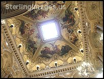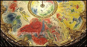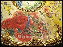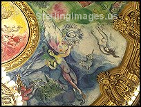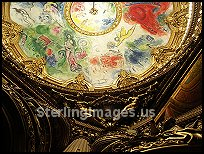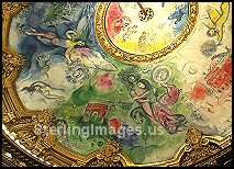 Thumbnails of photographs of the exterior, entrance lobby, and interior ceiling of the main performance hall of the famous, older Paris Opera house known as Palais Garnier, Le Garnier, Opera Garnier or the Opera National de Paris. The main ceiling fresco was created by Marc Chagall and signed 1964. Camera for these photographs: Konica Minolta DiMage A200 (ISO 50). October 3, 2005. Original digital resolutions are in the 2500 x 3400 range and prints up to 20" x 30" show no significant loss of quality.